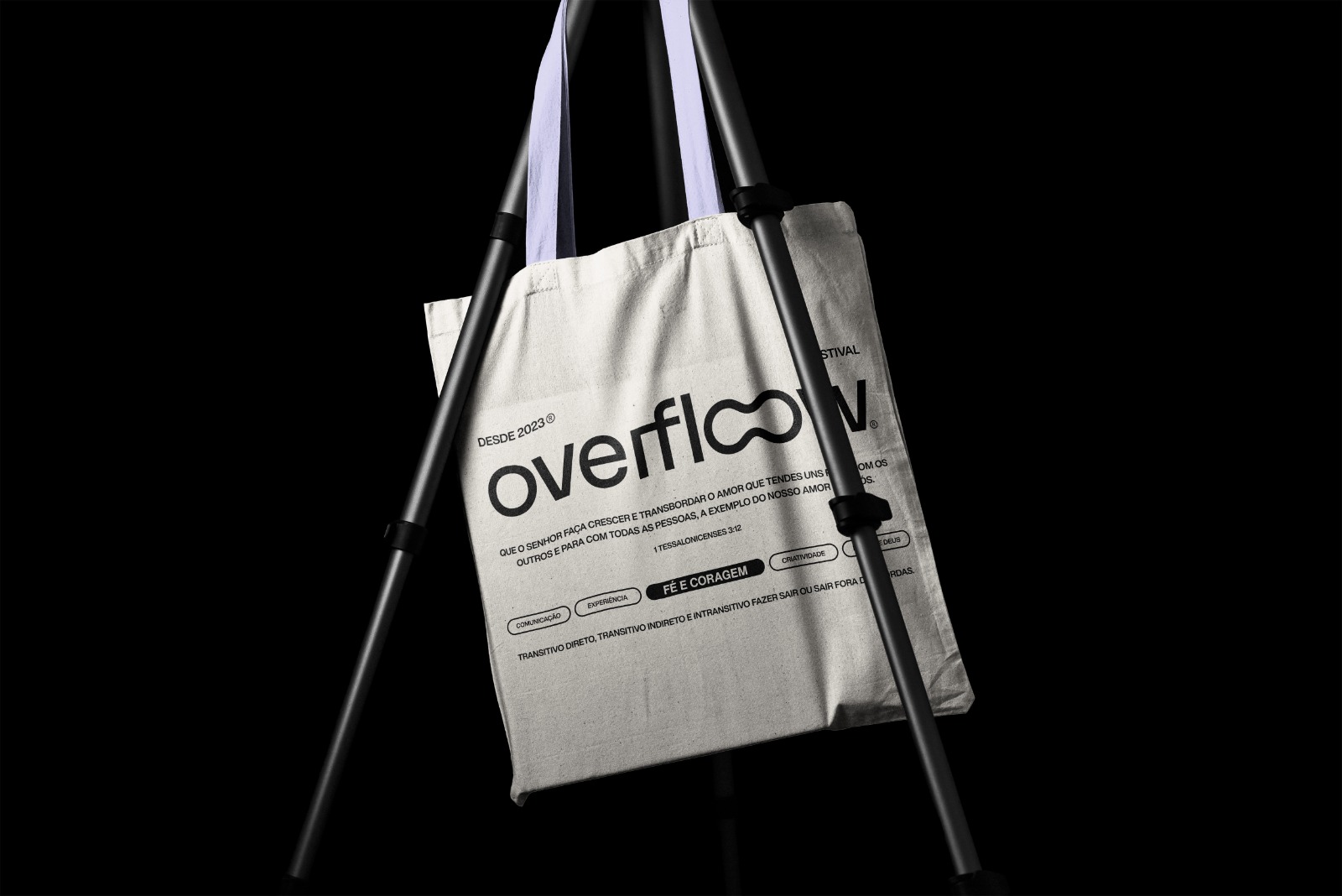 A ecobag branca Overflow une propósito e praticidade, com um design que destaca a mensagem bíblica e os pilares que definem o movimento. Perfeita para o dia a dia e para quem gosta de carregar mais do que objetos — gosta de carregar valores.